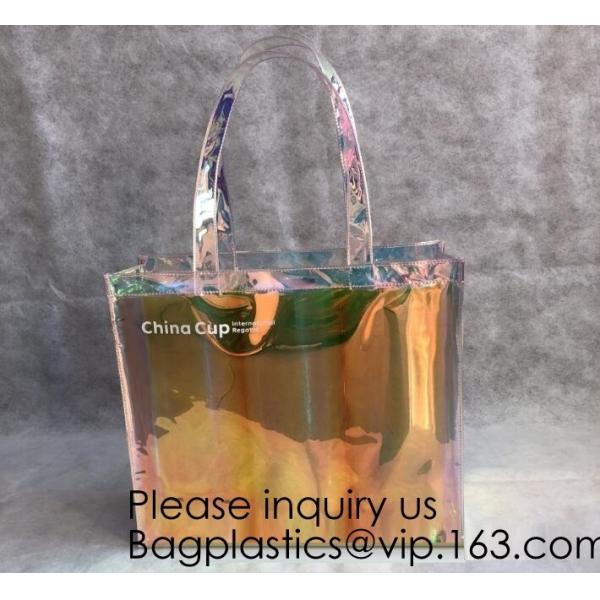 Laser Handle Shoulder Bag Glitter Tote Bag Pvc Holographic Bag, vinyl rainbow, Beach Swimming Tote Images |